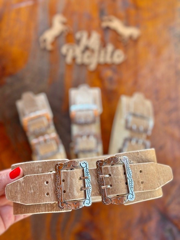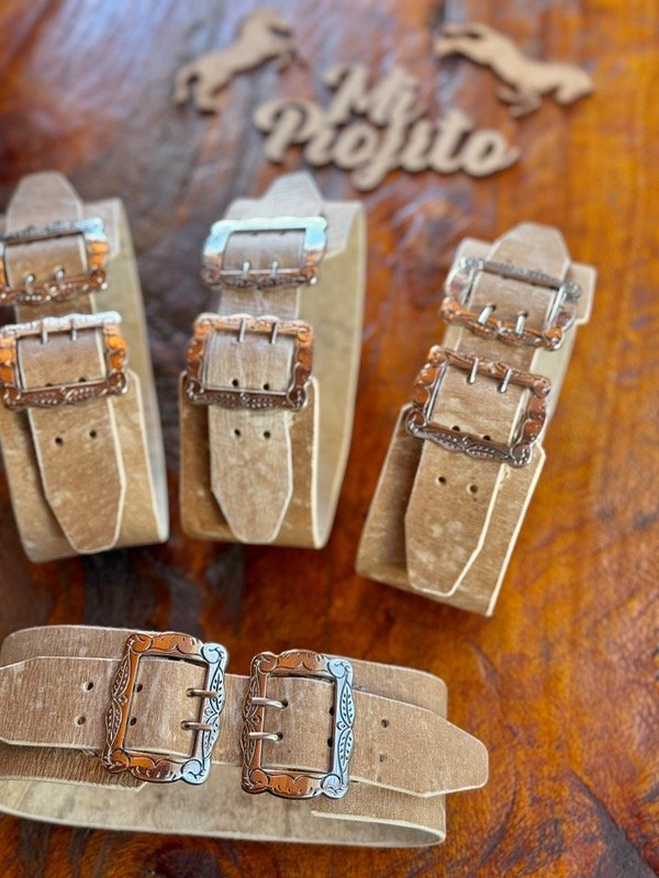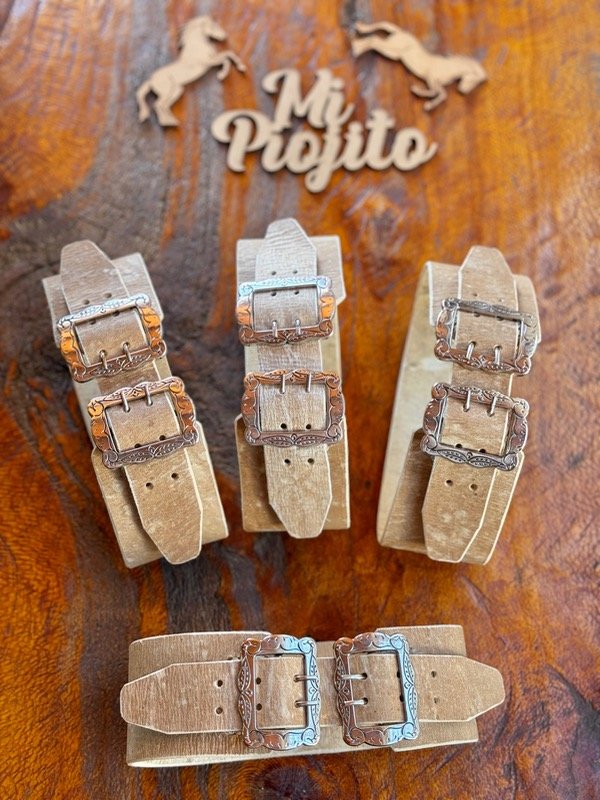 Rastras Gauchescas para Bebés realizadas en cuero Crudo con hebilla Rectangular.