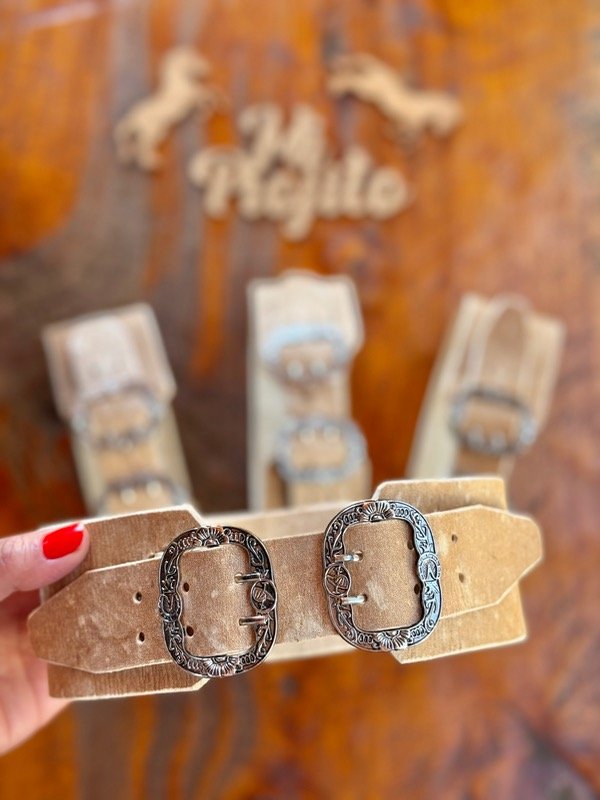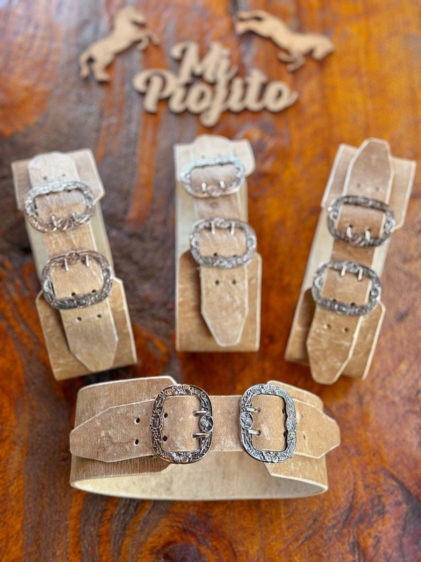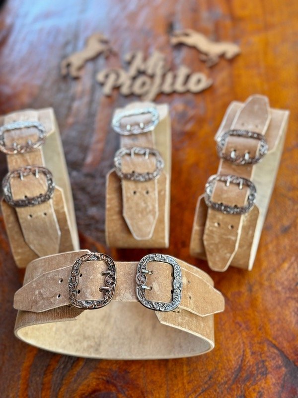 Rastras Gauchescas para Bebés realizadas en cuero Crudo con hebilla ovalada.