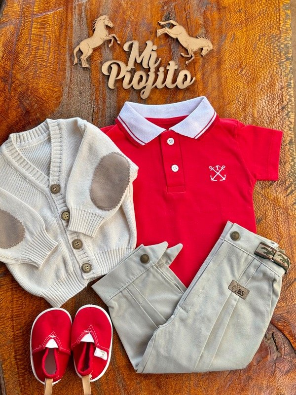 Chomba Bebé Rojo Cuello Tejido Algodón
